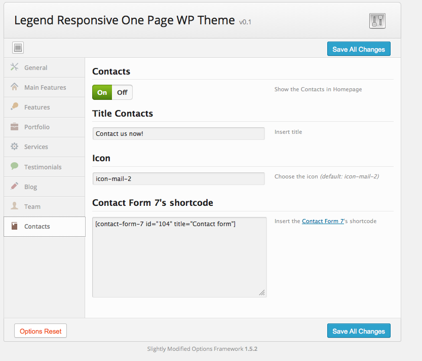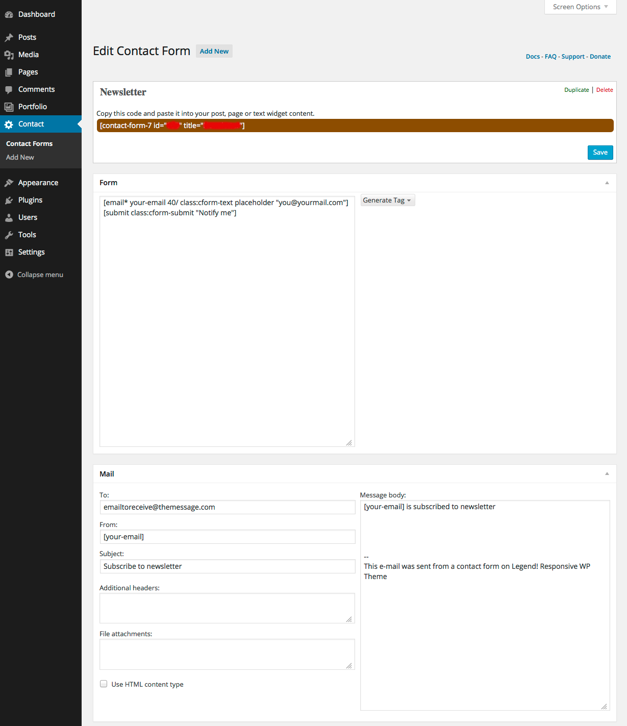 and paste it in the Theme Options panel filed (navigate to Apparence > Theme Options > Contacts) and click Save All Changes.
