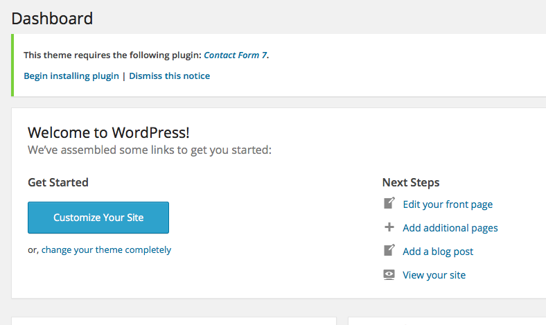 A notice at the top of the screen will now suggest to continue with the recommended plugins installation. Click 'Begin installing plugins' and select the plugins you need to install from the list. All plugins must be activated once the installation has finished.