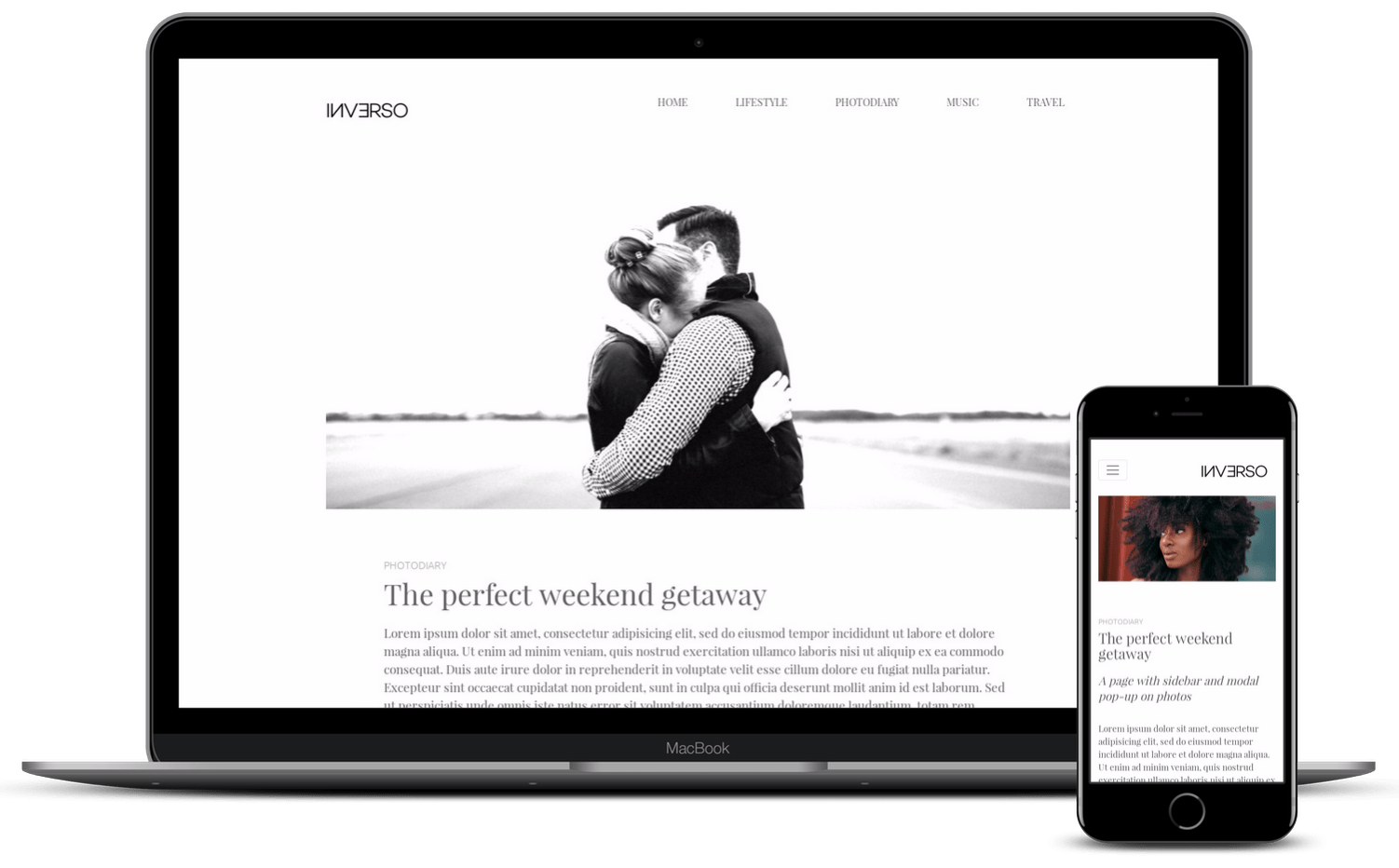 with four different pages: Homepage, Single with Sidebar, Category Archive and Homepage with Full Width & Slideshow