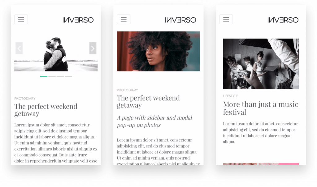Homepage, Single with Sidebar, Category Archive and Homepage with Full Width & Slideshow.