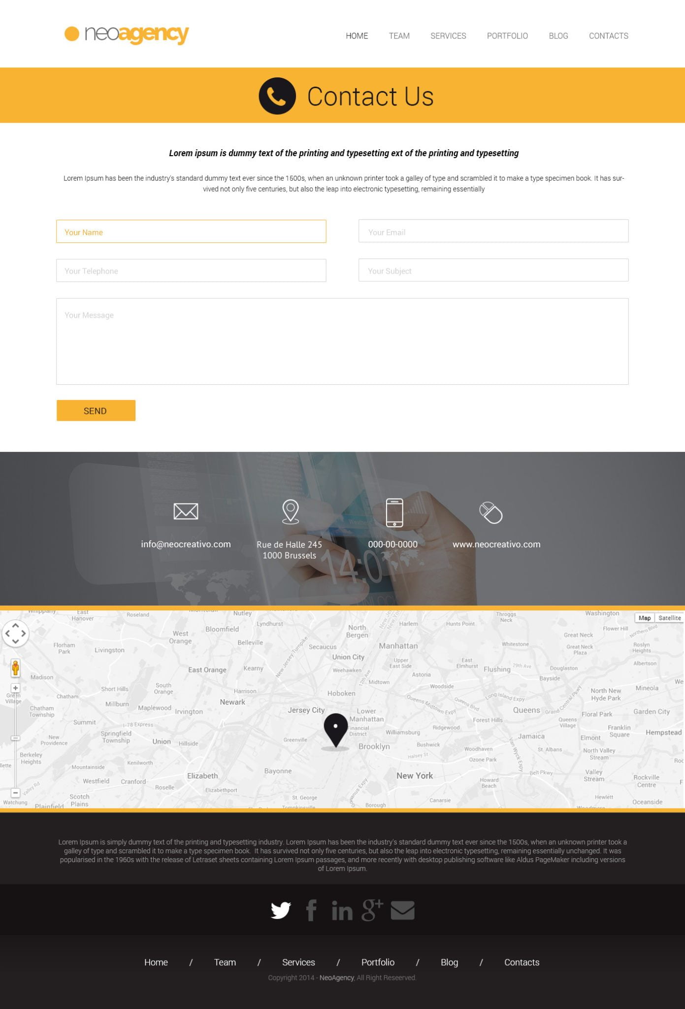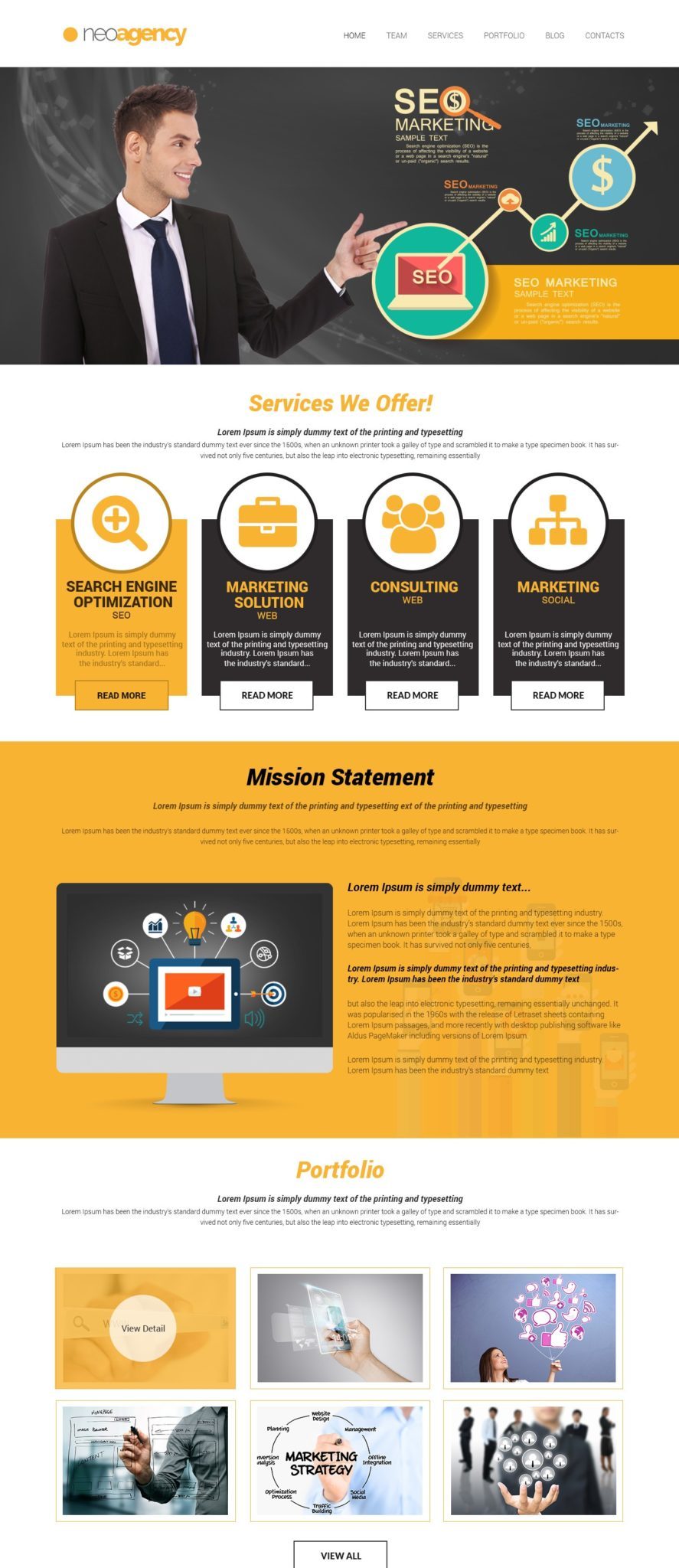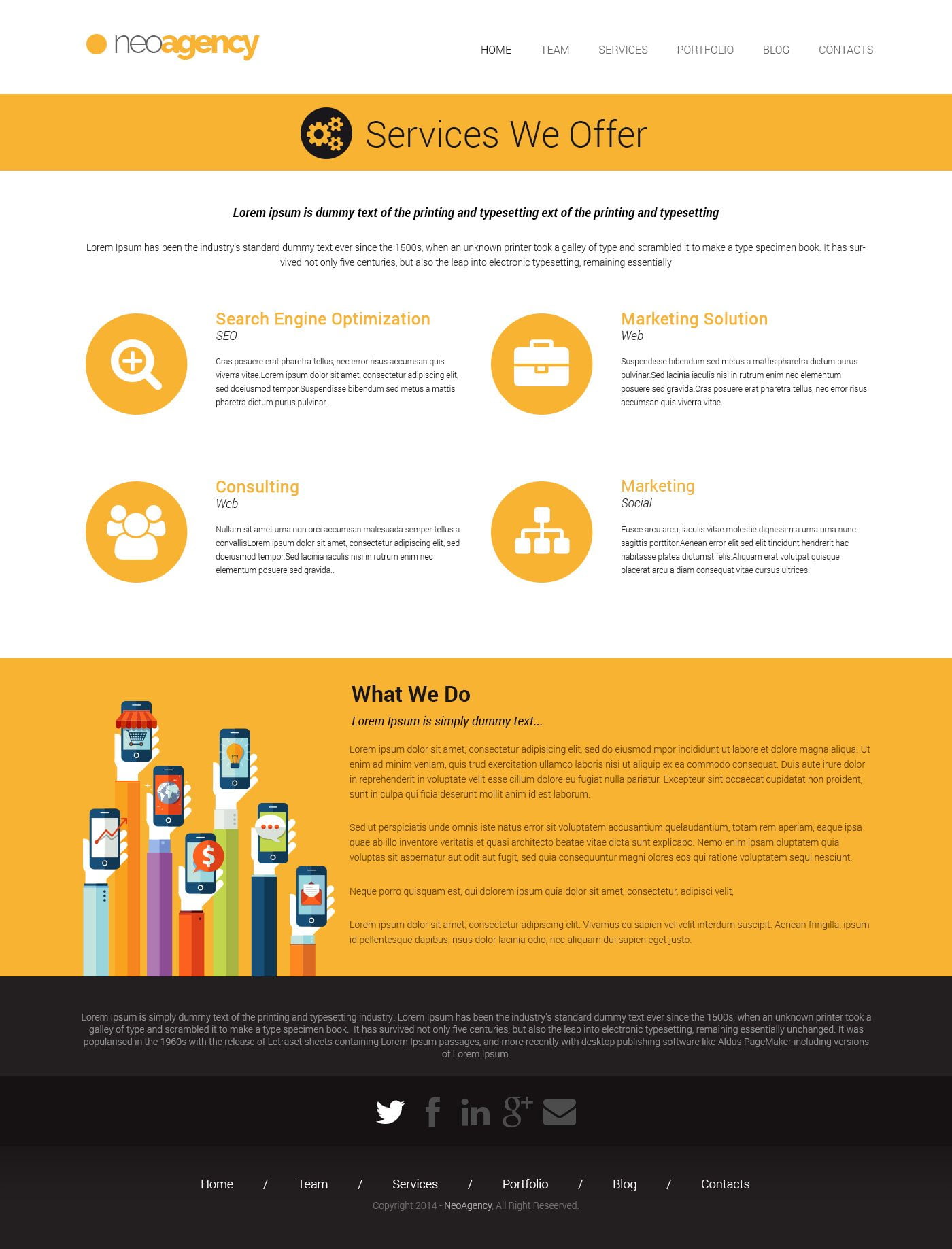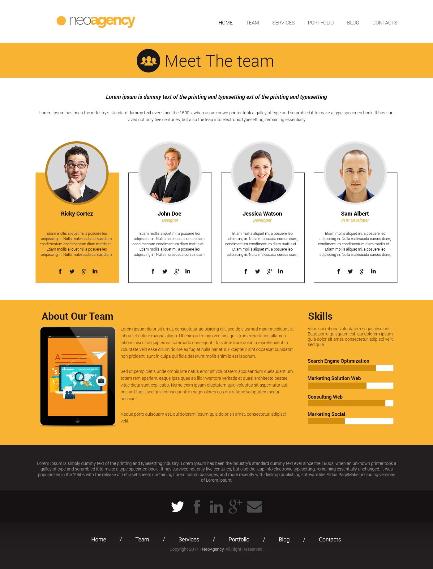 • 4 Pages availables: Homepage / Team / Services / Contacts