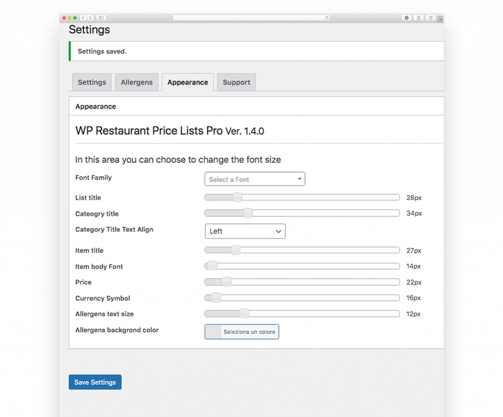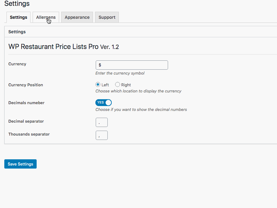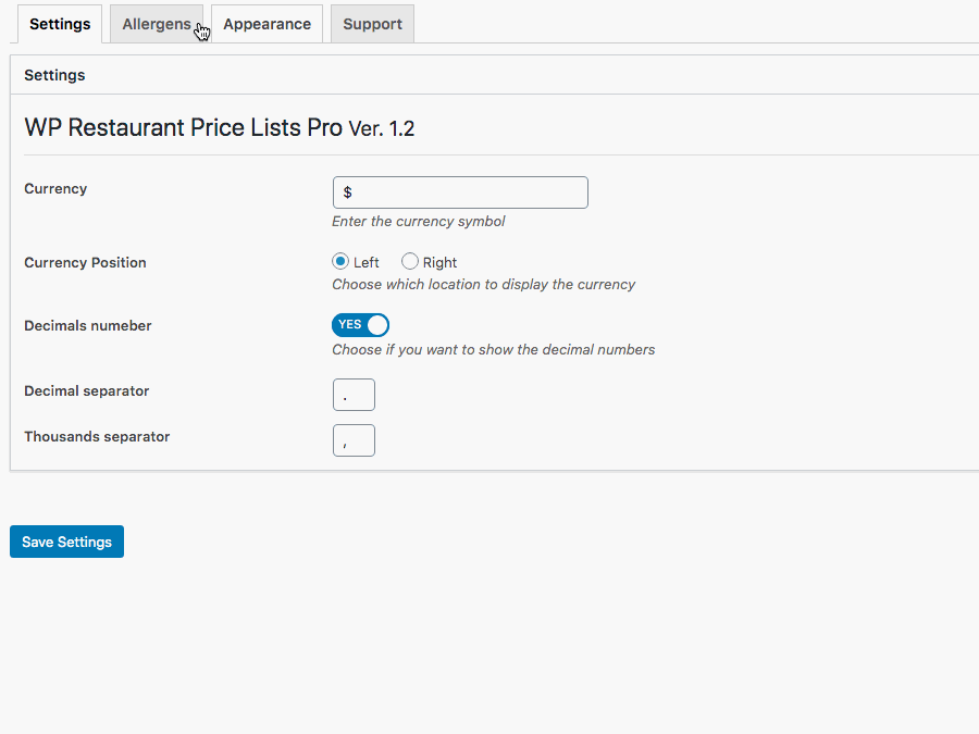 * Bug Fix – Bug that did not allow allergens to be included in menus