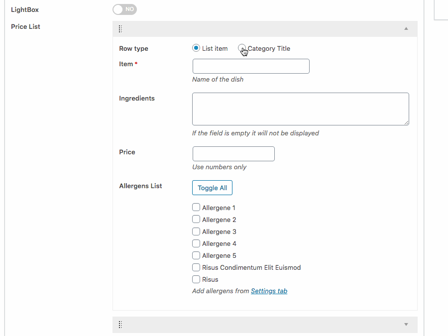 * Bug Fix – Problem not showing options correctly when choosing Lightbox